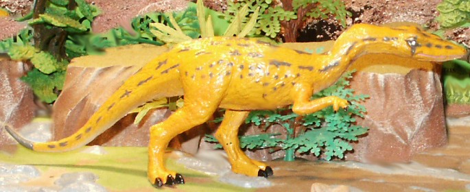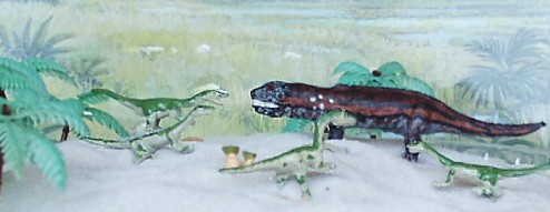 Toyway Postosuchus from the Walking with Dinosaurs series. K&M Coelophysis custom painted by Stephen Robertson.