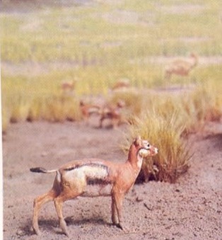 Leptomeryx, a small relative of the modern mouse deer lived from in North America. It lived it social groups much like modern small antelopes. | |