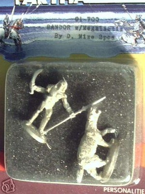 After being bought by FASA in 2000, Ral Partha disappeared entirely for a while when FASA closed it's doors. Iron Wind Metals now owns the rights to many of their miniature line, and is working to bring them back into production. Ral Partha was a well established company, and they started making lead miniatures in 1976. Based in Cincinnati, OH, the firm started by carving mainly historical figures. At this time I believe the Prehistorics and Beast Master molds still exist. Figures are usually stamped with date and a the company name. The best of their work sets the standard of comparison for current companies. Partha Pewter is popular collectable with hard core metal dinosaur figure collectors. There is an entirely separate group of Ral Partha figure collectors.