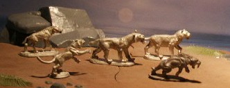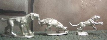 Machairoidus, old Smilodon and Cave Lion these are the best guesses for these loose figures. The older Smilodon probably predates the Beast Master collection.