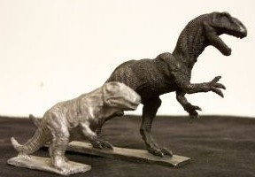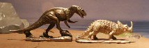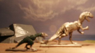 I suspect many of these figures were released in other configurations. The Diatryma and Phororhachus may have been recycled and sold separately. There was a lead figure release, then later the Partha Pewter high quality release and then a later release in leadless pewter. Naming was creative rather than scientific. The small carnosaurs were not carnosaurus but 2 pelycosaurus and a rauisuchid. Monoclonius Agathaumas is an interesting combination, Monclonius is a ceratopsian with a large nose horn while Agathaumas is now considered a junior synonym for Triceratops. The Triceratops in the original king Kong was Agathaumas. Much of the lists below are based on the Ral Partha page by Thomas Pope at the Stuff of Legends site. I have added items where I believe the lists were incomplete and the comments are all mine. The links will take you to diorama pages that the use the figure. Many of the figures are so well done and attractive have been reluctant to paint them.