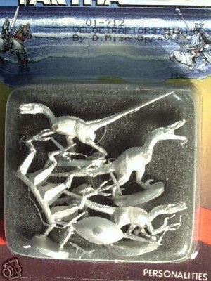 Some of the last work to come out of Ral Partha but not their best. The pictures look great and they aren't flat like the earlier figures. While the earlier figures were cast as single pieces these had to be assembled arms and legs didn't seem fit very well. I recall there was a Diatryma marketed with this group.