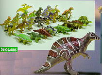 These figures were also sold in a plastic container shaped like a stegosaur in Museum shops. The nodosaur and large headed predator are distinct. |