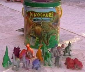 Small dinosaur sets are not new but they have become a standard marketing format. The Miller company one of the first dinosaur companies marketed a smaller set of figures. They is supposed to be a set of Marx molds for mini dinosaurs with rocks and trees that was never put into production. Tim-Mee had a set of mimi figures that were used a premiums and included with some of their standard sets. The Lido Nabisco sets falls into the size and were originally used as premiums. Generally these smaller sets were not very realistic.