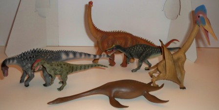CollectA formally Procon is an UK company making a range of animals figures. These figures from the UK designed for collectors by Anthony Beeson a respected collector and contributor to Prehistoric Time and friend of Dinosaur Collector. The scale is mixed like the Bullyland and Kinto figures. Originally the names of the figures were not stamped on the figures and there are color variants. The set is much livelier that the Toyway figures and it looks like they are trying to give it an English cast. Also sold as Epixx in the EU.