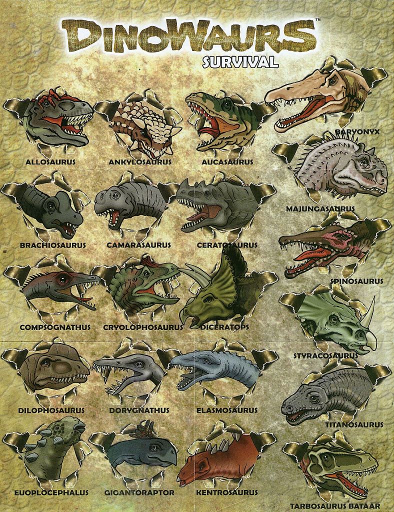 The Dinosaur Toy Forum is a good source for European collectables. Dinowaurs is the latest collectable card and figure set from Europe. Series one is a release of 36 figures about the size off Safari Toob figures. Each figure is purchased for about 3 – 5 US dollars. The figure comes with a collectable card that is used for a game. There is a web enabled version to play on the internet. This is very much the business model used by the Dino King and Predators collectable fads. Like the Kaiyodo UHA figures you buy a package, like a small corn chips bag, without knowing the figure inside. The frustration of getting duplicates has buyers publicly groping packages prior to purchase looking for rare figures. I still have not obtained a Titianosaurus and the Cracker Jack; surprise in a box, marketing only irritates me. The figures are detailed rather than accurate but the series contains several figures not produced by other toy companies. Figures have no names stamped on them; you are left to matching them against their portraits. They have the Battat disease, irregular and deformed limbs due to a rubbery medium and early mold release. The animals are gray, silver, brown or green with highlights painted on teeth, mouth or eyes. The lack of full painting hides the details in the better figures. I like the idea, if not the execution.