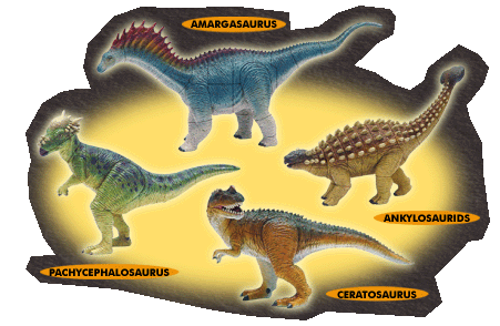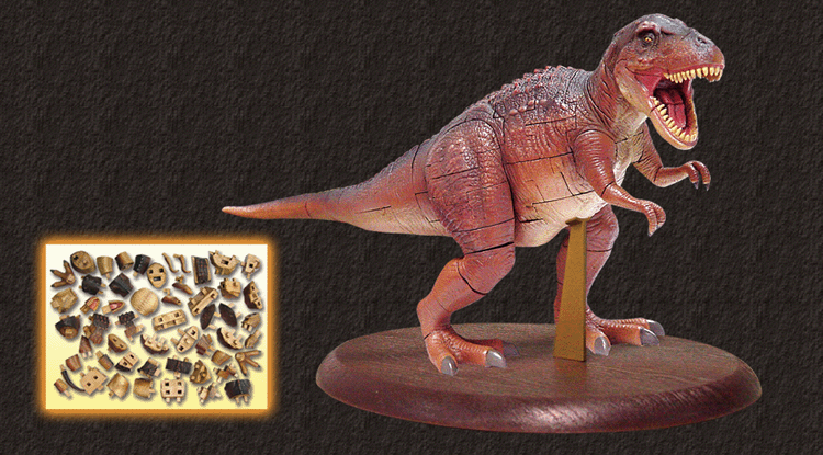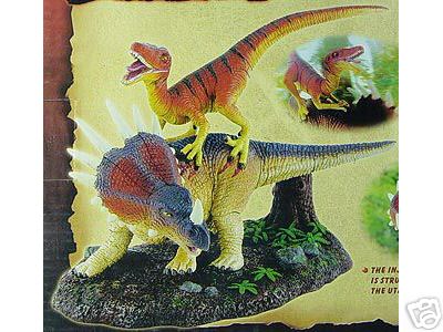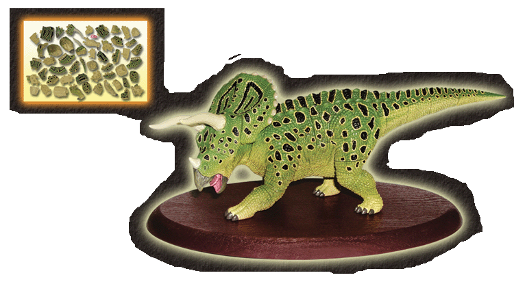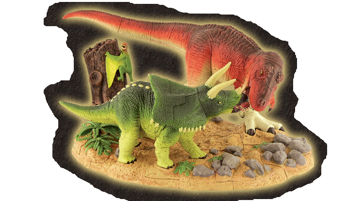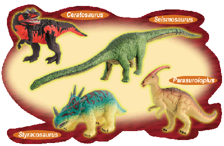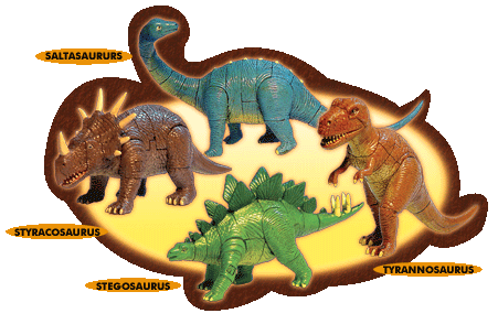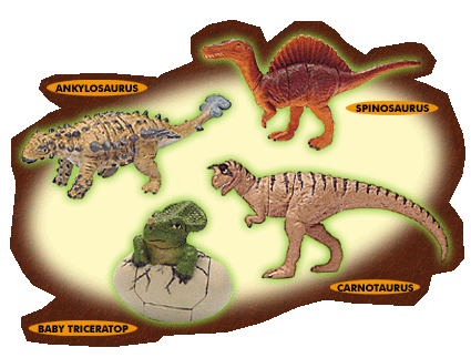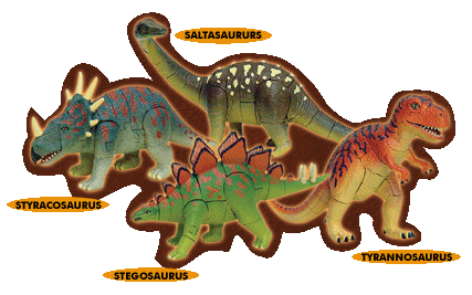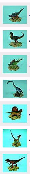 Based in China, the Fame Master company produces a range of rubber puzzles; Dinosaurs being just one of the themes, initially produced in a variety of formats. The medium figures are most commonly sold in eggs, also in blister packs. The diorama sets don't seem to have been sold widely. The large and small figures haven't sold well and are not currently being marketed in the US any longer..