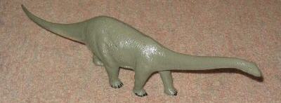 The grandfather of the Museum lines, was a 1/45 scale series, with some exceptions, of unpainted dinosaurs and prehistoric mammals done with British Natural History Museum. The figures have Marx feel and the ROM series also captures the same feeling. There was a Stenychosaurus that was withdrawn from production because of a copy right issue. The series also included a Blue Whale. The series includes several English dinosaurs not normally found in other series. While Baryonx has become common at the time it was a unique choice. The figures look a little old fashion, very Burien now, but many paleontologists still prefer them and you can see them used in documentaries. Later most of the series was sold in painted versions. To my knowledge the Lambeosaurus, Dimetrodon and Stenychosaurus were never painted. The painted set is a personal favorite but the paint is fragile and easily damage so I expect in a couple of decades mint figures will be at a premium. The set is still popular as a base for custom build ups. They paint well and with careful application of heat are pliable allowing manipulation of the postures. See Ray Rimmels book on Dinosaur models for detailed instructions. The was also a plaster cast set of 4 figures based on Museum figures. As of 2004 the British Natural History Museum has discontinued their relationship with Invicta to release a new series with the Toyway company that did the Walking With Dinosaurs toy series. The museum also has some kind of endorsement with Dinosauria a company from England purchased by K&M and added to their New Republic line. The style of the figures is consistent with Marx, MPC , ROM and Klein Welka figures. See Larmie for hollow vinyl copies..