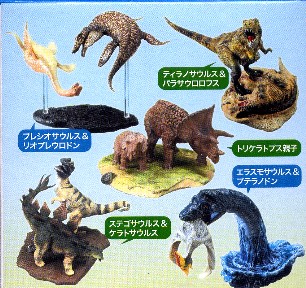 Dinosaur Museum Collection made by Bandai Company Japan and distributed by Gakken. These dioramas are made for educational purposes in Japanese Schools (gakken). There are 5 dioramas in the series. These figures are made of a rubbery plastic rather than resin.