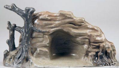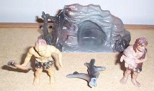 The caveman family set with the cave is very rare and sought after by collectors. There were two different caves produced this is the more common small opening cave. | The cave with large opening is very rare and highly sought after. For collectors it is important to keep Millers figures in cool storage to prevent degradation of the medium. |