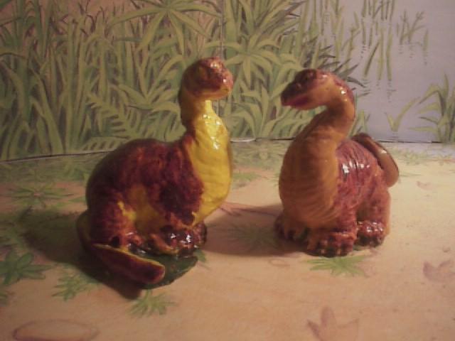 Most of the above are the original with glow in the dark high lites. The exceptions being the yellow Homocephale #21 and the Light Green Pteranodon in the egg to back right.